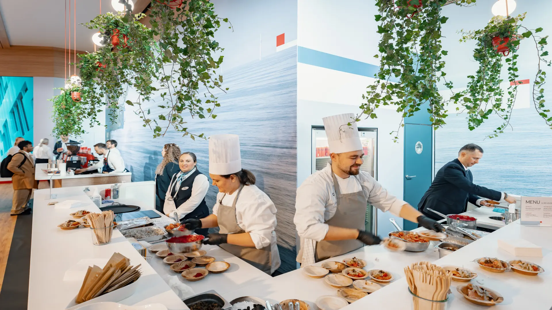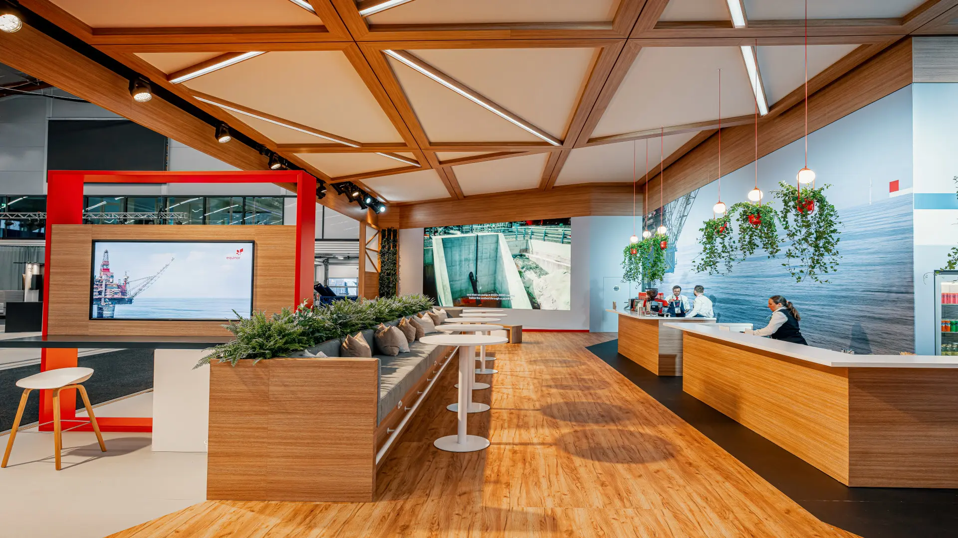 Equinor-utstillingen fungerte også som en viktig møteplass for både fagfolk og besøkende. Den var designet for å fremme nettverksbygging og produktive samtaler, med moderne møterom som ga et ideelt miljø for forretningsdiskusjoner og samarbeid. Rommene var utstyrt med høyoppløselige LED-skjermer og avansert teknologi, slik at presentasjoner og møter kunne gjennomføres med høy kvalitet og effektivitet.